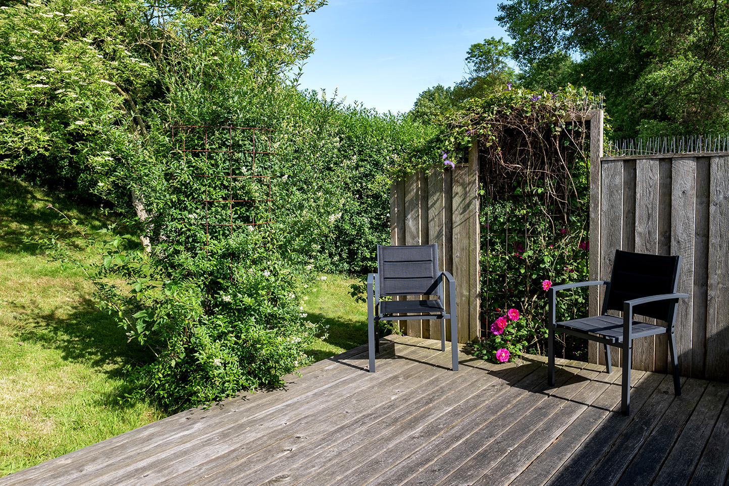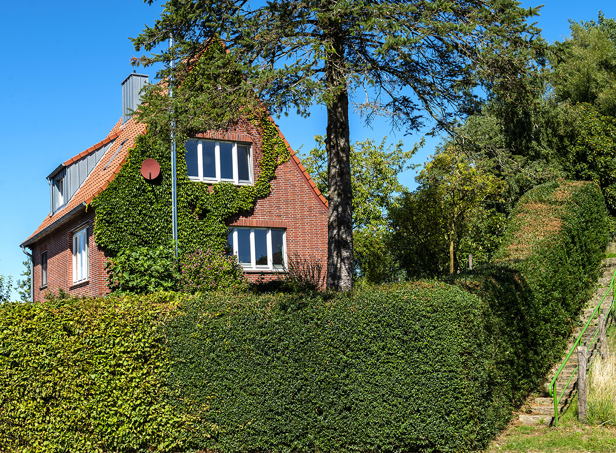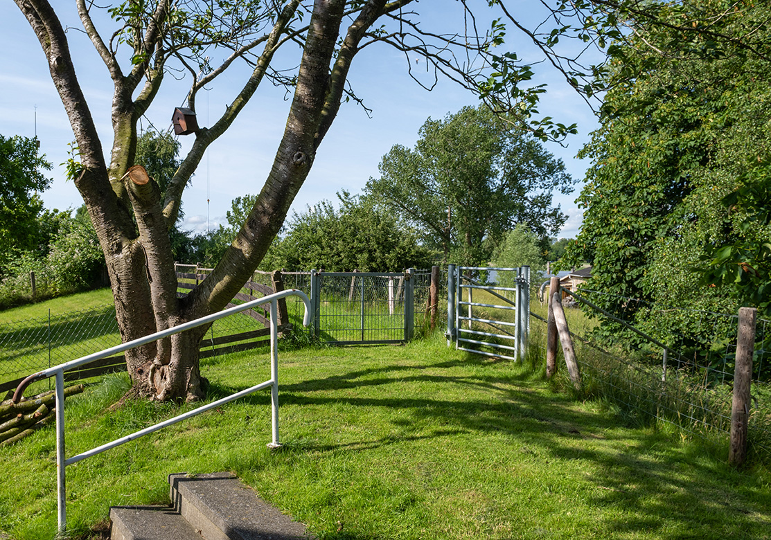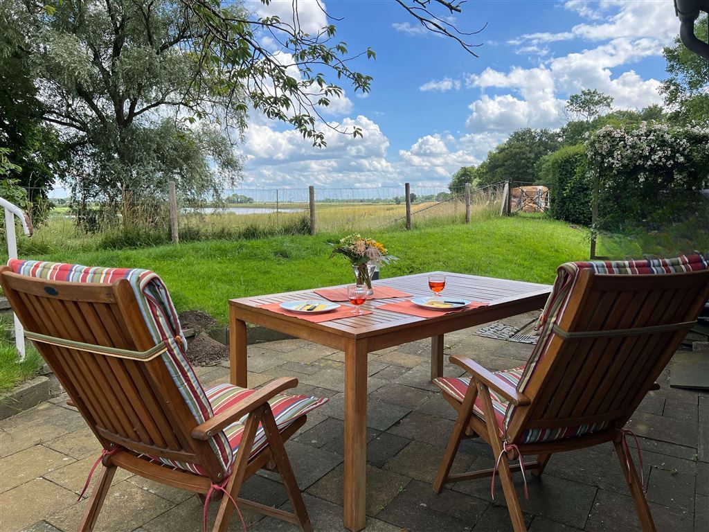 Das naturnahe angelegte Grundstück bietet neben dem einzigartigen direkten Blick auf die Oste und die grüne Deichlandschaft viele Möglichkeiten zum entspannten Aufenthalt im Freien.