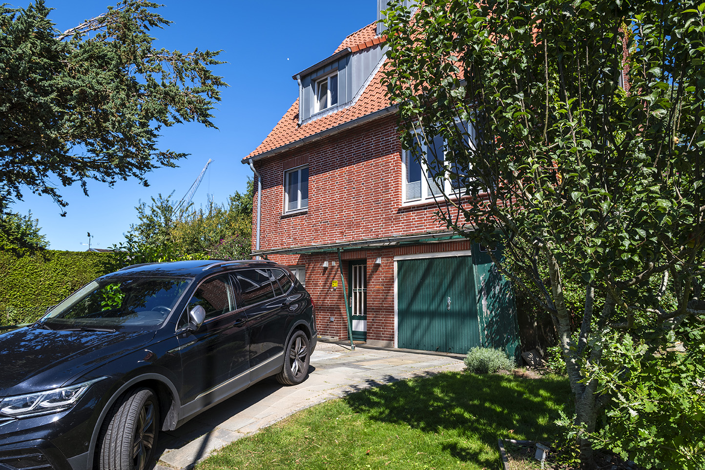 Durch die direkte Deichlage besteht die Möglichkeit das Haus sowohl vom Keller/ Untergeschoss, als auch vom Erdgeschosss zu betreten. Im Untergeschoss befinden sich neben dem Wellnessbereich mit Sauna und ebenerdiger Dusche noch der Hauswirtschaftsraum, ein großer Vorratsraum und die Garage.