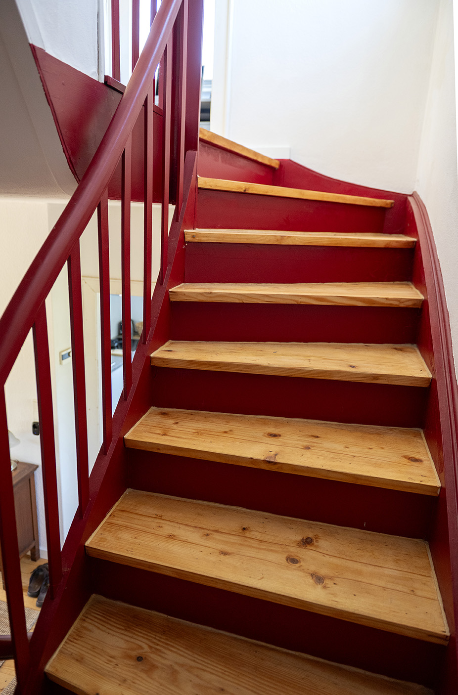 2025 Überarbeiten der originalen Holztreppe (EG nach 1. OG) inkl. Geländer (Anschleifen, Streichen, Lackieren)