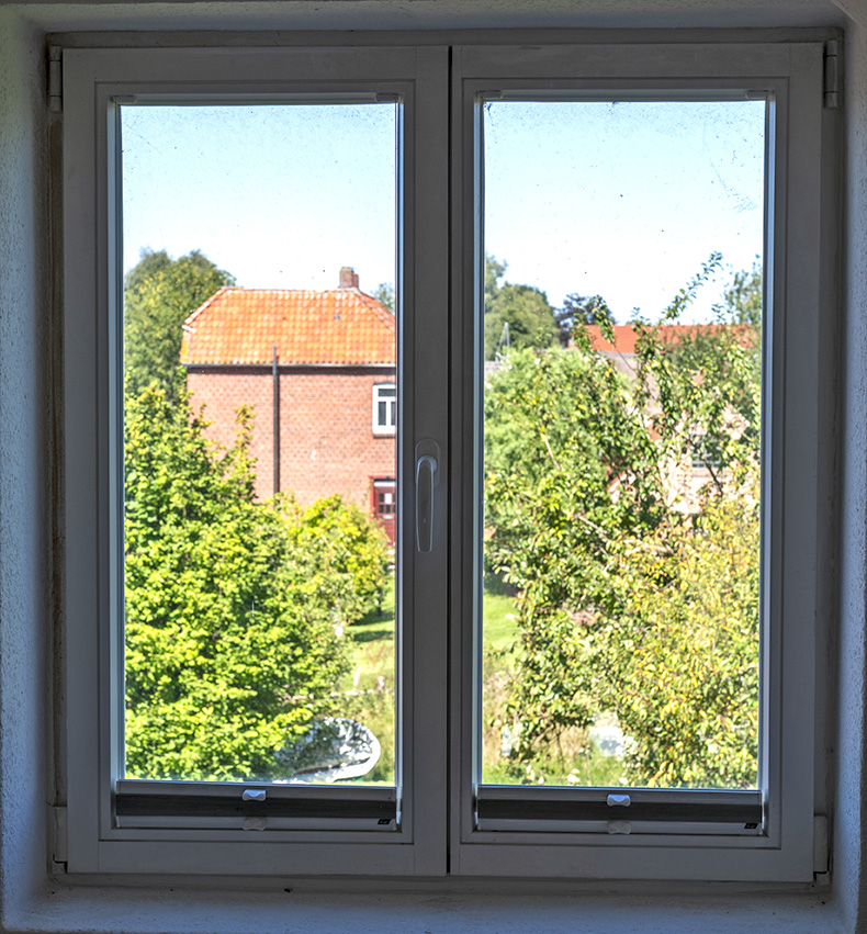 2013 2-fach verglaste Holz-Isoglasfenster, tw. mit angefertigten Insektenschutzgittern, Plissees