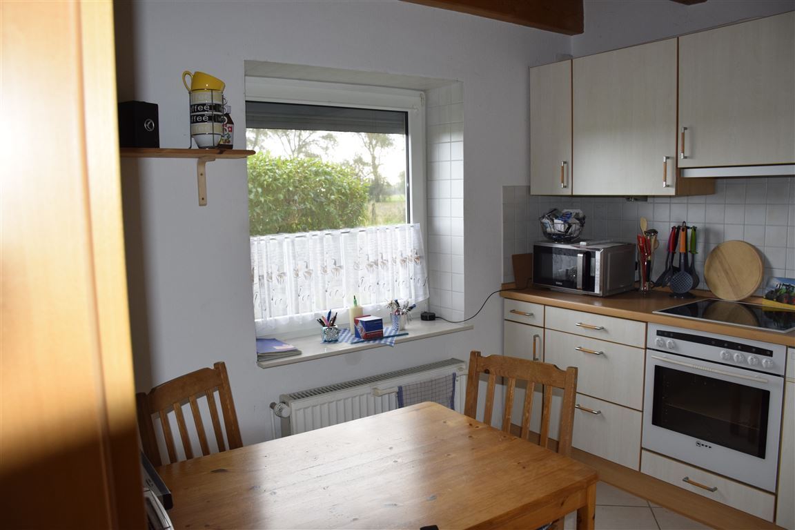 Geräumige Küche mit EBK.Wohnzimmer mit Ausgang zur Terrasse. WC mit Waschmaschinenanschluss, Flur, Aufgang zum OG.