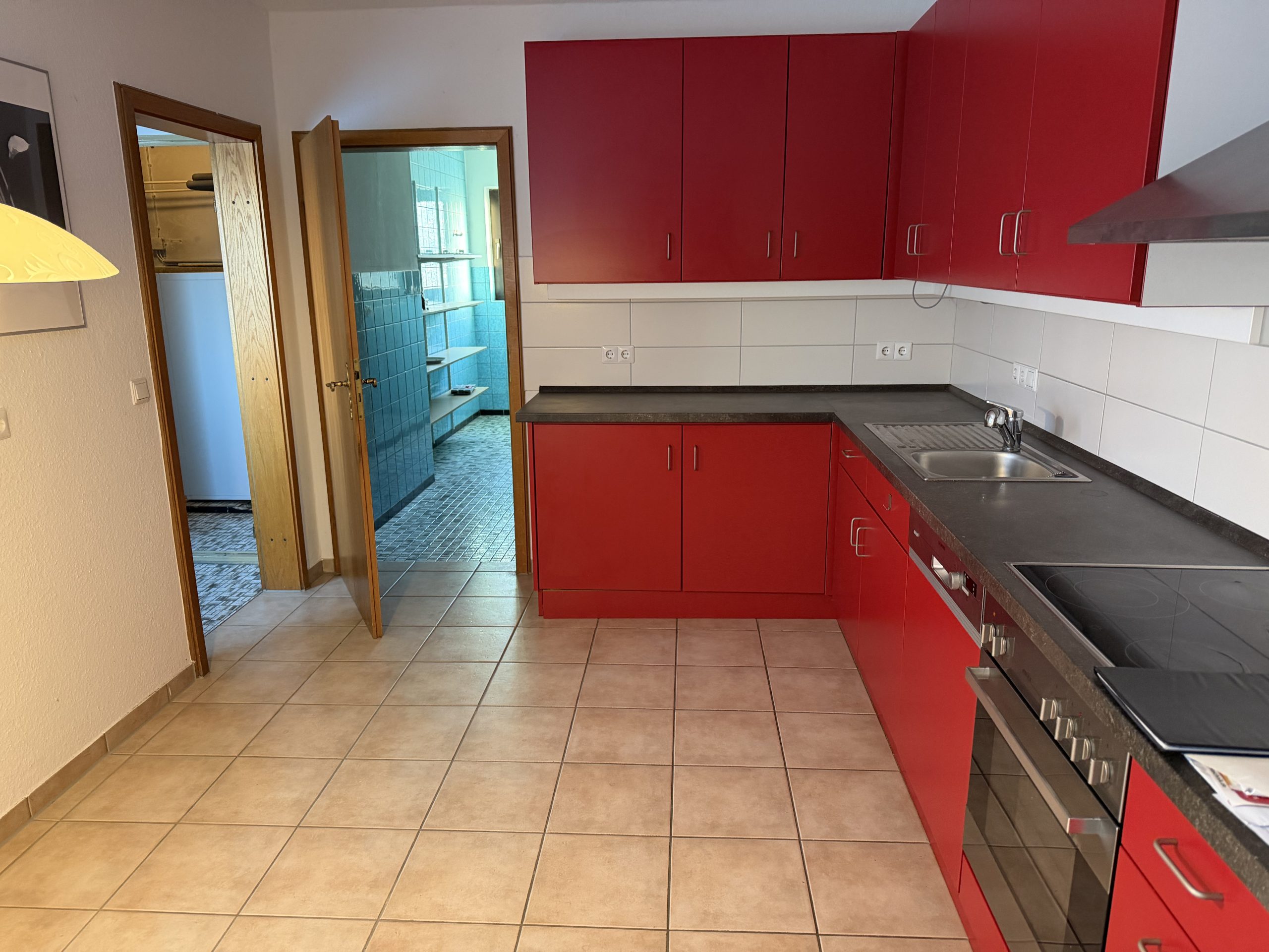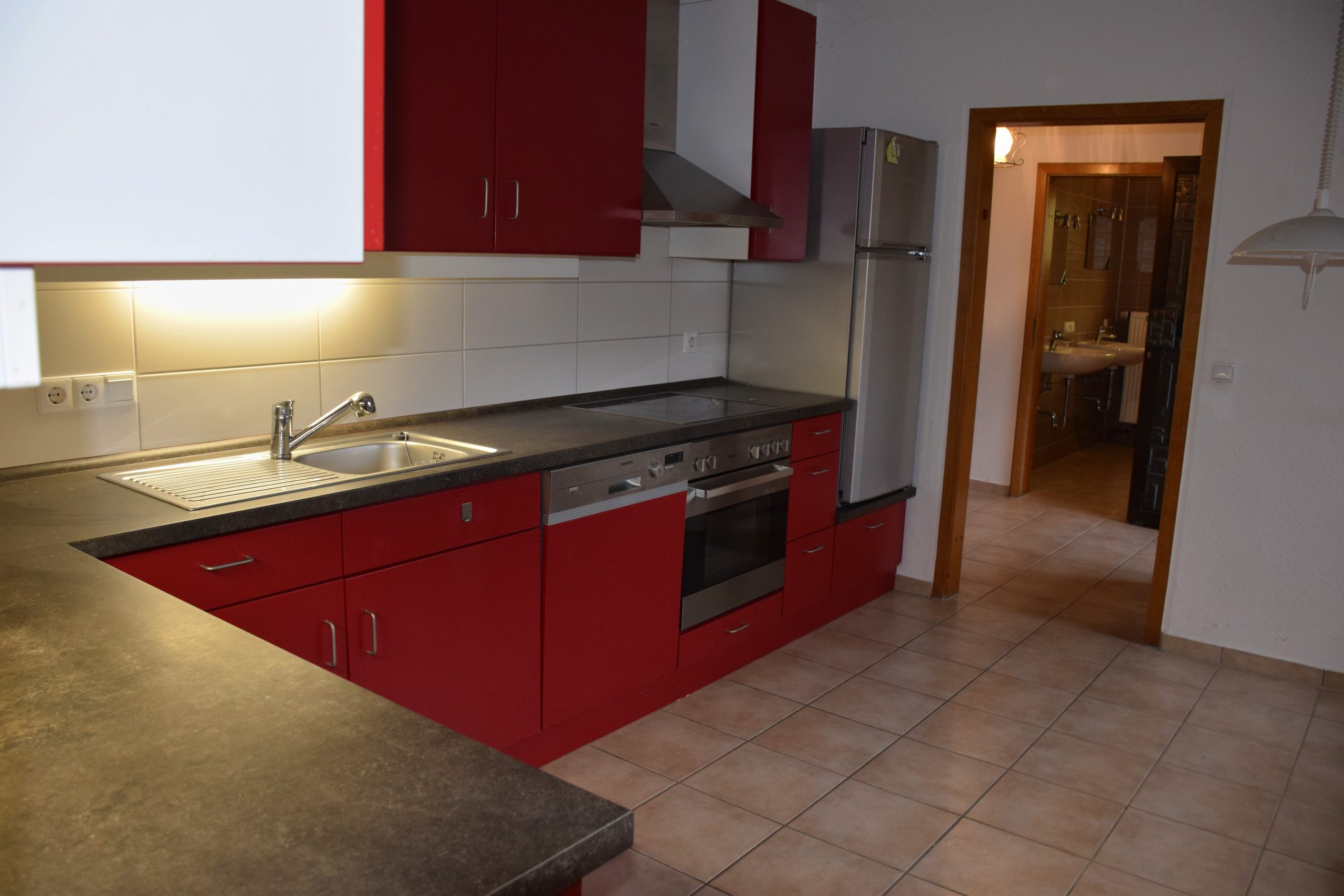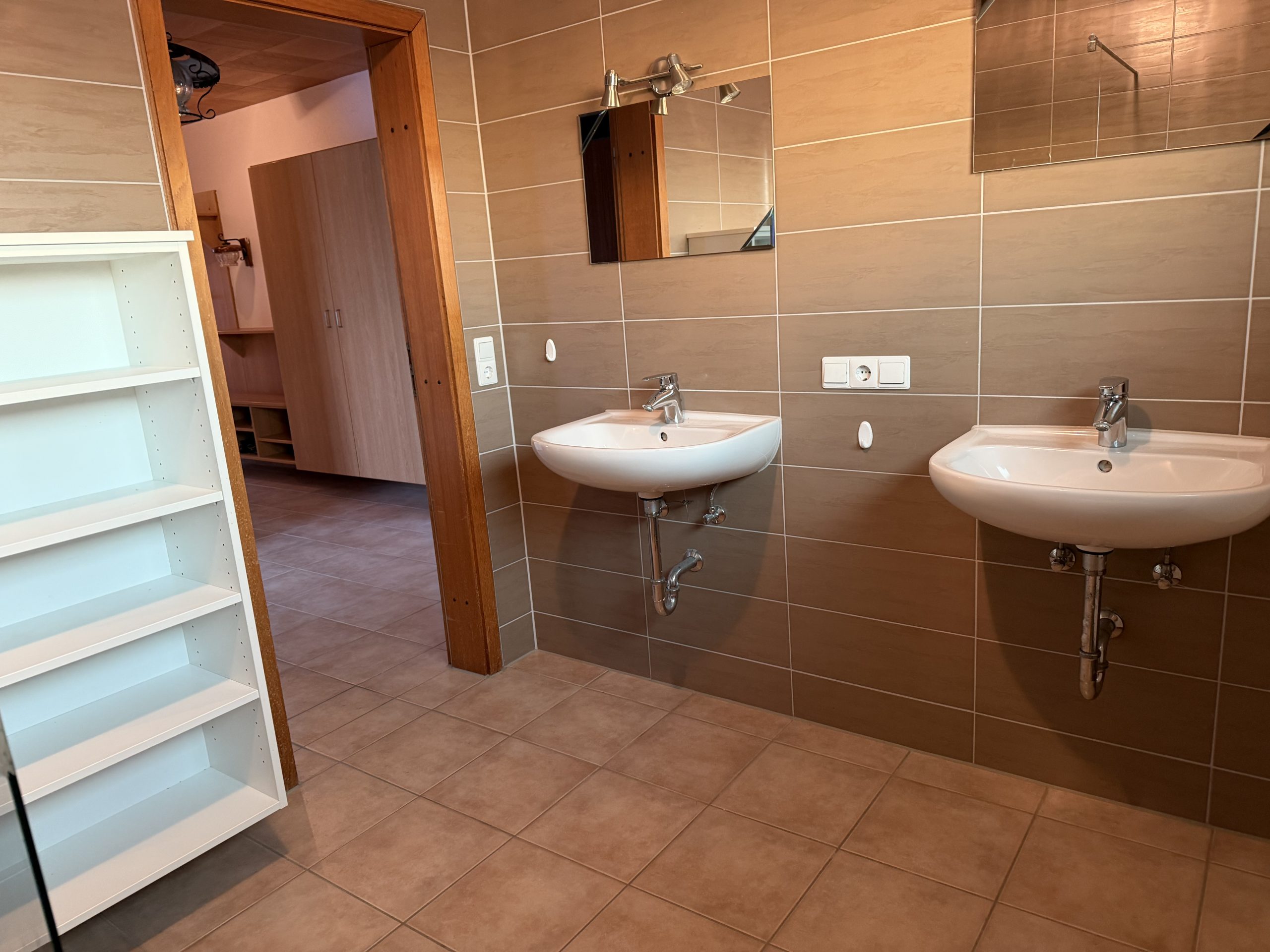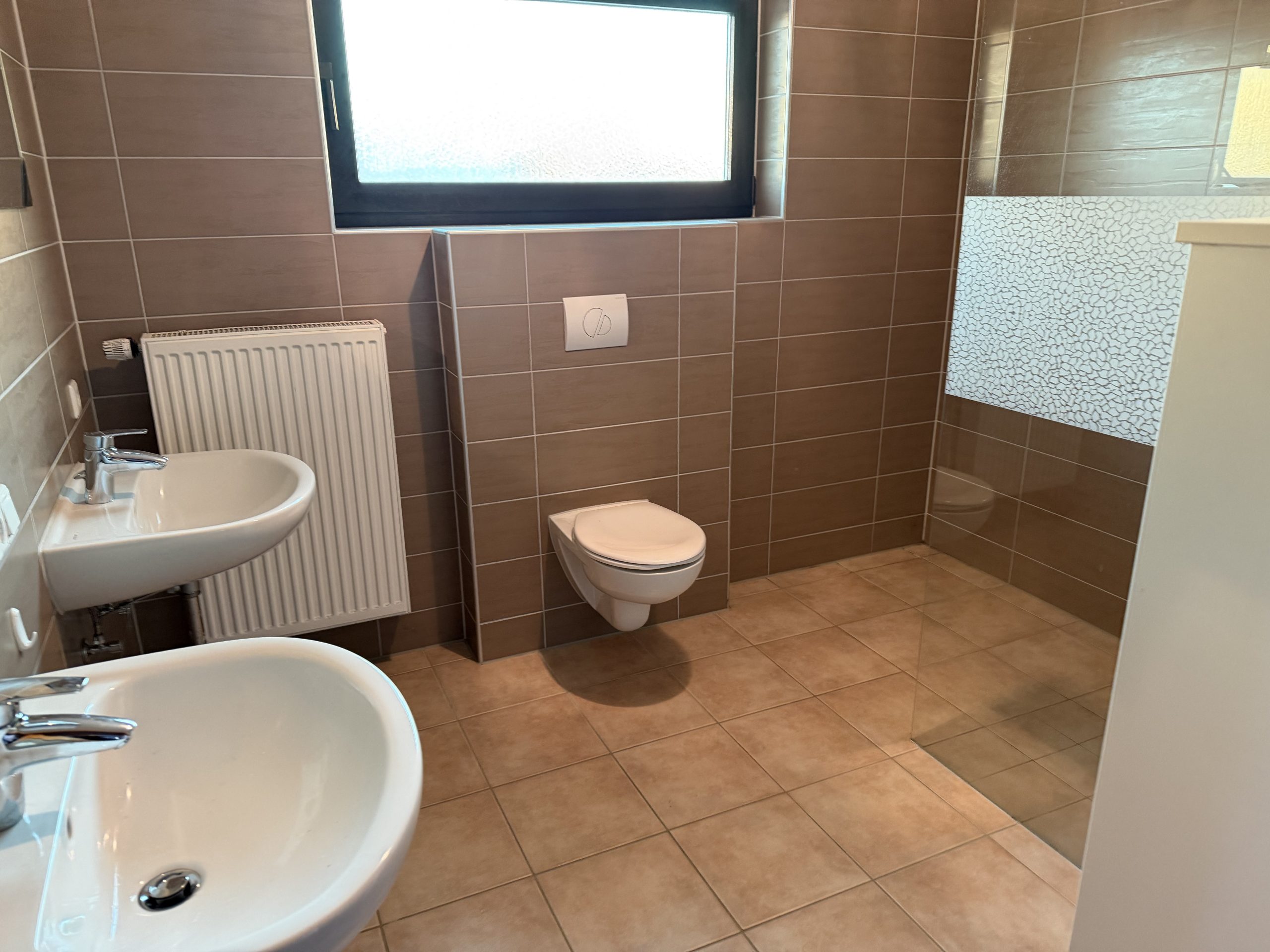 Großes Wohnzimmer mit Zugang zur Terrasse, Esszimmer, Schlafzimmer mit Zugang zur 2. Terrasse, Gästezimmer/Kinderzimmer, Küche mit Einbauküche, barrierefreies Duschbad, Gäste-WC, Hauswirtschaftsraum und Vorratsraum.