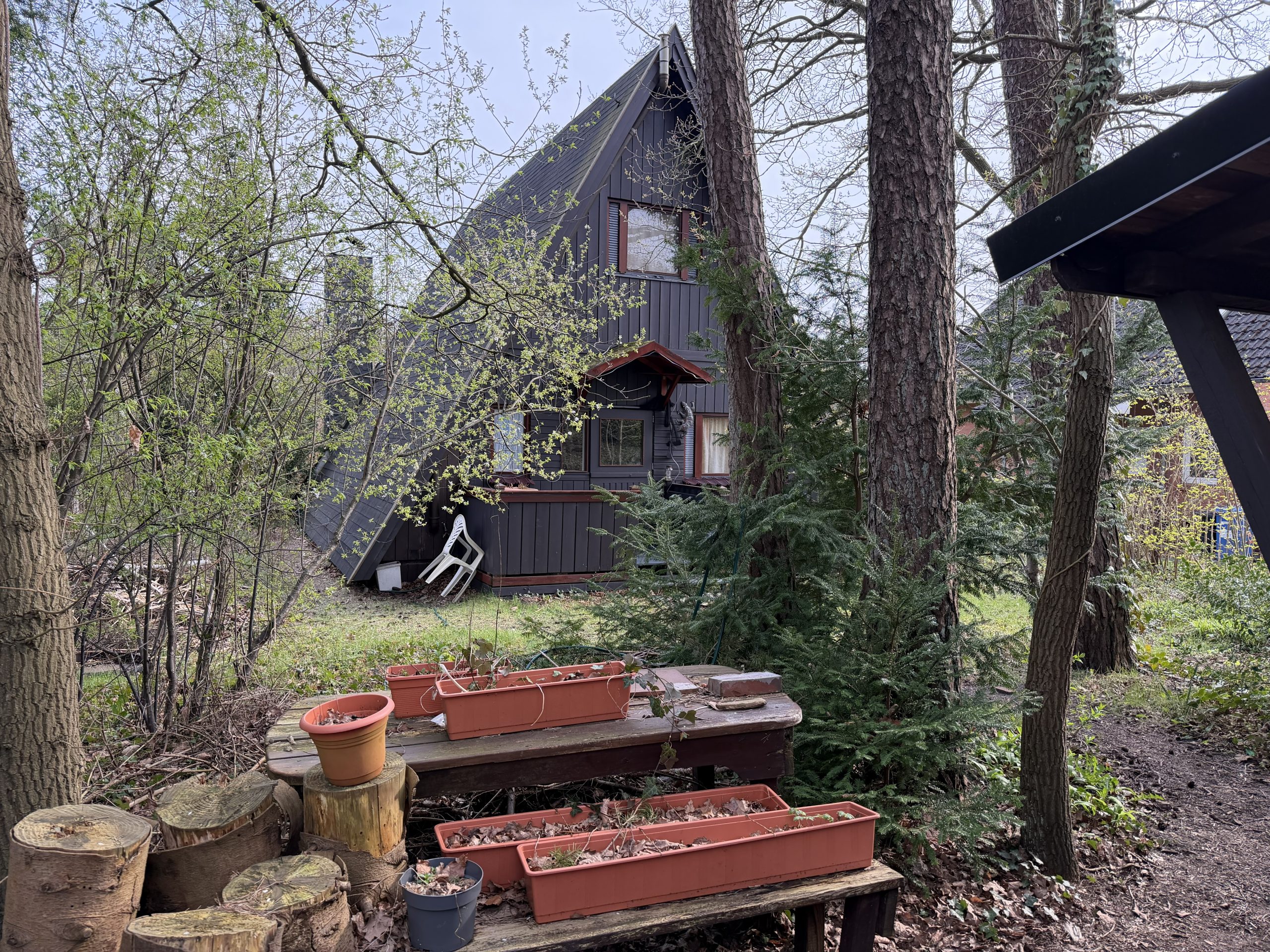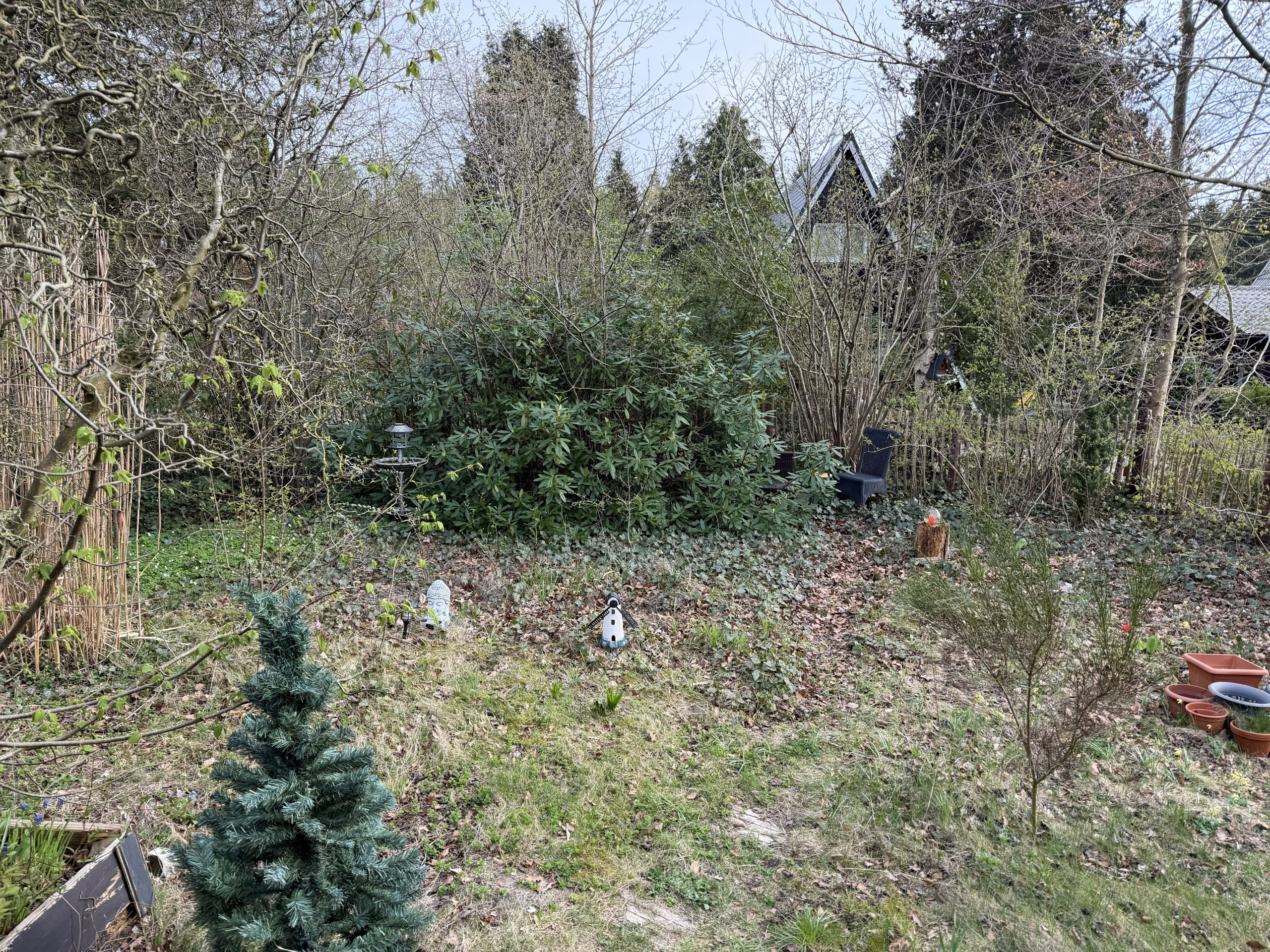 Das Gartengrundstück ist naturbelassen angelegt und bietet neben der großer, teilüberdachter Terrasse auf der Rückseite, noch weitere Rückzugsmöglichkeiten.