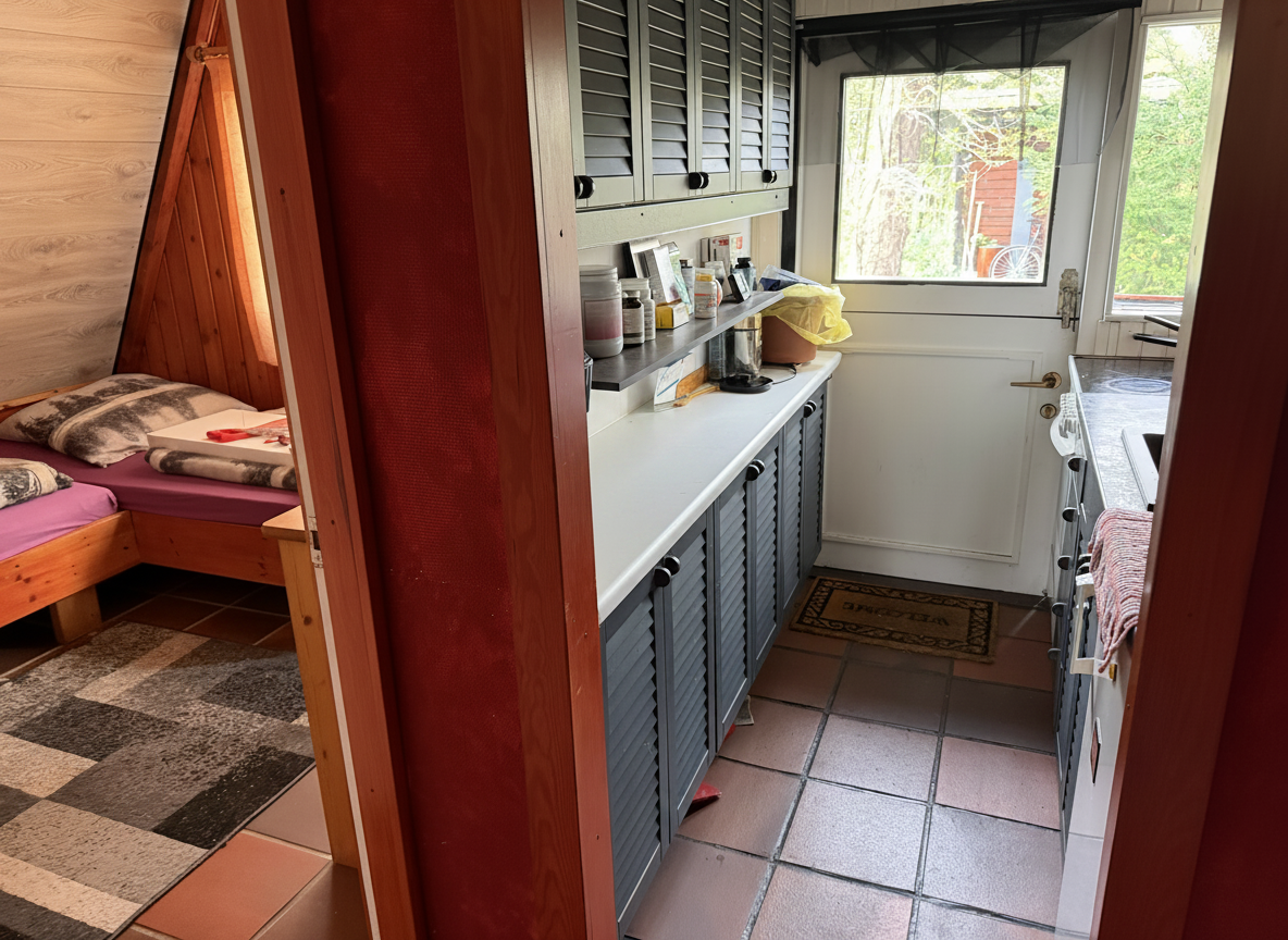 großes Wohnzimmer, Schlafzimmer, Küche mit Einbauküche und Bad im Erdgeschoss sowie 2 Schlafzimmer im Obergeschoss - wird es auch dem Anspruch eines Dauerwohnens gerecht.