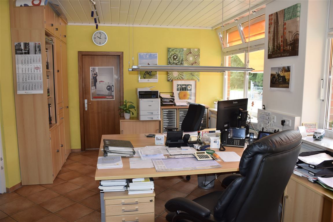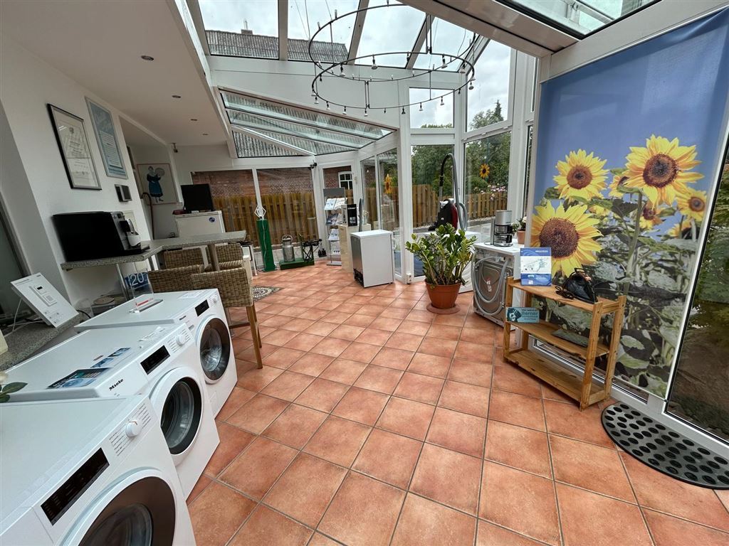 28 m² Verkaufsraum, ein erst 2003 angebauter 28 m² großer Wintergarten, als zus. Verkaufsraum, 2 Büroräume, Mitarbeiter WC, Werkstatt und Lager.