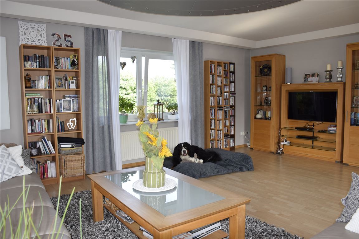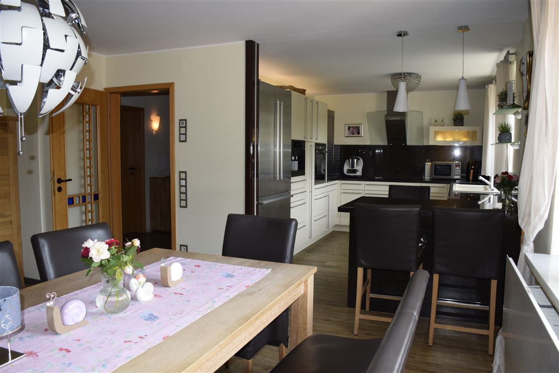 Großes, lichtdurchflutetes Wohnzimmer mit Kaminofen und Zugang zur Loggia, Esszimmer mit offener, sehr hochwertiger Wohnküche - ein Traum für jeden der gerne kocht, Schlafzimmer, 2 Kinder/-Gästezimmer und modernes Duschbad. Alles im absolut gepflegten Zustand! So möchte man Wohnen!