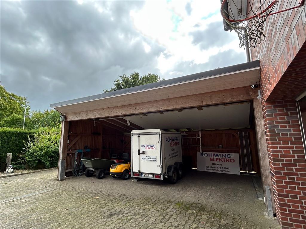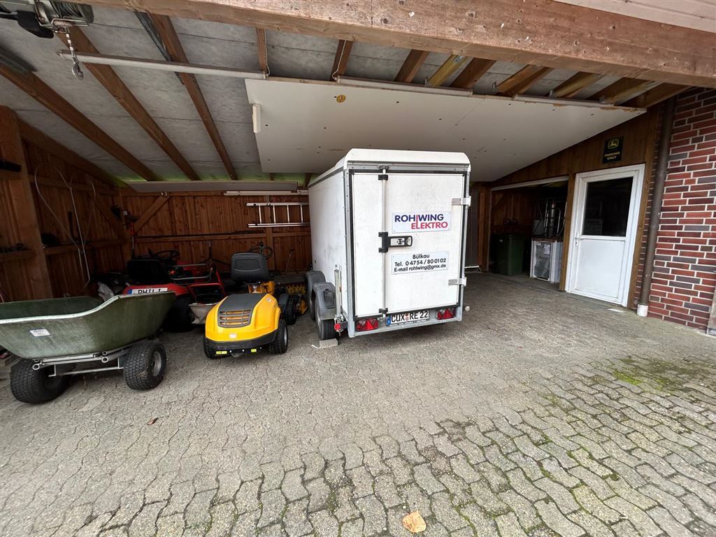 Die 73 m² große Doppelgarage mit Zugang zum Lager und der Werkstatt, ein 35 m² Carport mit Zugang zu einer weitere, 27 m² großen Garage/Abstellraum und viel weitere Park-/ und Stellfläche runden das Platzangebot für jegliche Art von Gewerbe ab. Eine weitere Garage steht der Betreiberwohnung zur Verfügung.