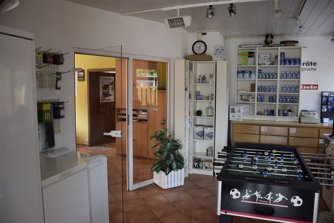 28 m² Verkaufsraum, ein erst 2003 angebauter 28 m² großer Wintergarten, als zus. Verkaufsraum, 2 Büroräume, Mitarbeiter WC, Werkstatt und Lager.