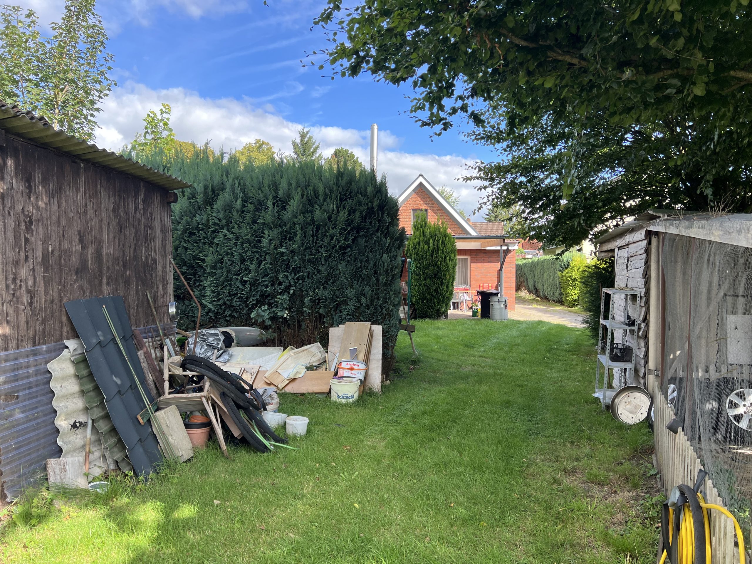 Das Gartengrundstück ist stark bebaut, ggf. ist ein Teilabriss der aufstehenden Gebäude sinnvoll.